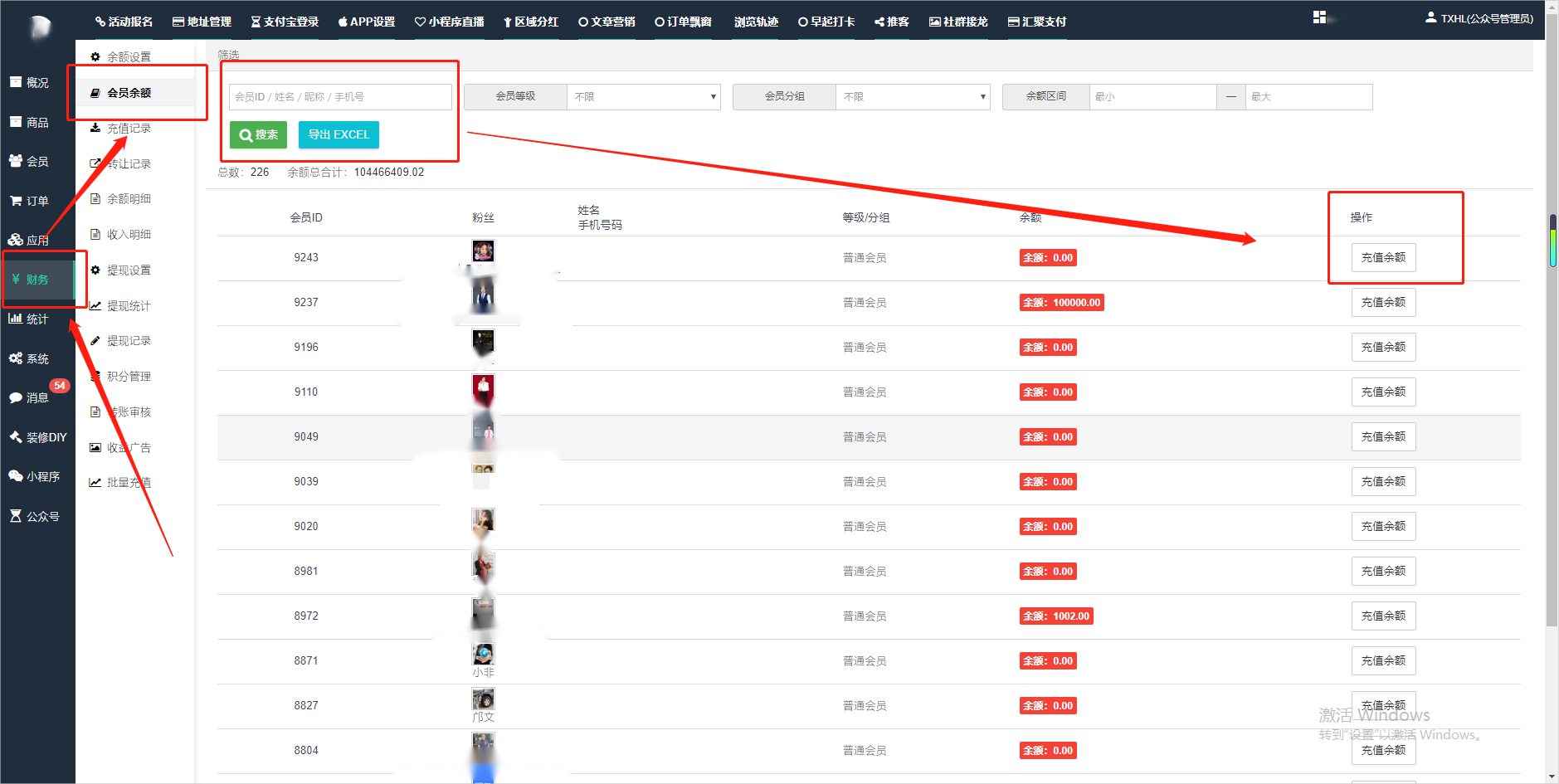 目录 搜索 展开 一、前期准备资料二、数字乡村码-上线操作指南1、服务号的申请流程及认证2、申请小程序流程3、开放平台绑定小程序和公众号三、数字乡村码-系统操作数字乡村码系统管理-概况数字乡村码-商品管理1、发布商品2、商品列表3、商品表单4、商品分类5、品牌管理6、配送模板7、评论管理8、优惠券管理9、商品标签10、退货地址设置11、满额优惠12、批量操作13、配送方式14、基础设置15、商品隐藏四、数字乡村码-会员管理1、全部会员2、会员等级3、会员分组4、资格申请5、会员设置6、推广中心设置7、会员邀请码8、会员关系链修改关系链修改记录9、会员合并记录10、账号注销管理11、会员设置中心五、数字乡村码-订单管理1、订单管理列表2、订单处理流程3、订单状态4、订单修改价格5、订单退款退货6、多包裹发货7、批量发货订单操作步骤8、催发货订单9、物流查询六、数字乡村码-财务管理1、余额设置2、会员余额3、充值记录4、转让记录5、余额明细6、收入明细7、提现设置8、提现统计9、积分管理10、转账审核11、收益广告12、批量充值七、数字乡村码-系统管理1、商城入口2、商城设置①、商城设置②、订单设置③、物流查询④、短信⑤、联系方式⑥、分类⑦、优惠券⑧、分享⑨、幻灯片⑩、广告位⑫、地图设置3、交易设置4、微信模板消息自定义消息模板(新版)自定义消息模板(旧版)小程序消息模板公众号模板消息变更公告5、语言设置6、权限管理7、多媒体管理八、数字乡村码-消息管理九、数字乡村码-应用管理十、数字乡村码系统-数据统计十一、数字乡村码-页面装修DIY1、模板管理2、店铺页面3、顶部导航4、底部导航5、DIY模板市场6、首屏广告7、基础设置8、装修DIY尺寸建议十二、供应商功能插件操作指南1、供应商2、门店-收银台门店申请和使用步骤门店管理①、门店-收银台 营销设置②、门店-收银台 分润设置门店分类门店申请门店审核门店商品门店商品订单收银台订单数据统计核销员基础设置默认设置门店装修3、微社区4、会务活动十三、营销插件操作指南活动报名提货卡新人奖微店问卷调查积分视频分享1、视频分享基础设置2、视频分享发现管理3、视频分享分类管理4、视频分享评论管理5、视频分享分红记录6、视频分享短视频中心每日红包幸运大抽奖签到优惠券二维码任务奖励优惠劵文章音频文章付费文章限时购新海报拓客卡操作流程积分活动素材中心视频红包十四、入驻门店应用类1、门店预约2、附近商品3、门店定位设置4、门店控制5、门店满额包邮6、门店满额减7、导入商品8、门店搜索9、门店股东10、核销券11、多门店核销1、商城后台设置2、前端功能演示十五、常见问题1、后台登录密码修改流程2、会员-余额,积分,后台如何进行充值与扣除3、如何修改上下级关系4、一种万能的获取商城小程序路径的方法 暂无相关搜索结果! 阅读次数:1561 本文档使用 模王系统 发布 2、会员-余额,积分,后台如何进行充值与扣除 会员-余额,积分,后台如何进行充值与扣除一.如何进行余额充值-扣除1.财务-会员余额-搜索会员昵称-右边点击充值余额2.扣除余额,只需要在充值金额前加上 - 号;比如充值-100,等于扣除100余额二,如何手动充值积分-扣除积分(充值与扣除逻辑跟余额是一样的)文档更新时间: 2024-01-05 14:28 作者:链上旅行